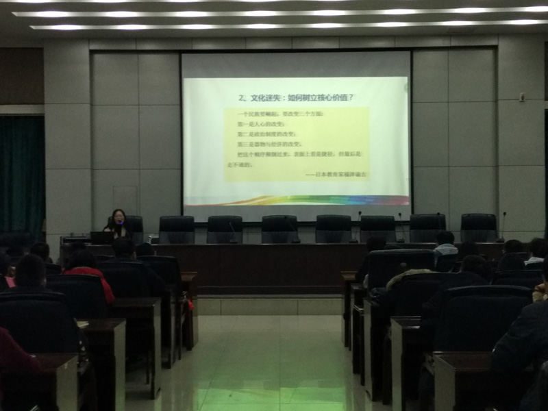 11月7日晚,我院邀请马克思主义学院李英副教授以《习近平总书记的治国理政思想》为主题的专题讲座,学院党委副书记刘会娟出席,bet365官方网投、团委、各系团总支书记、学生社团学“习”会全体成员、以及大一新生班委三百余人参加。